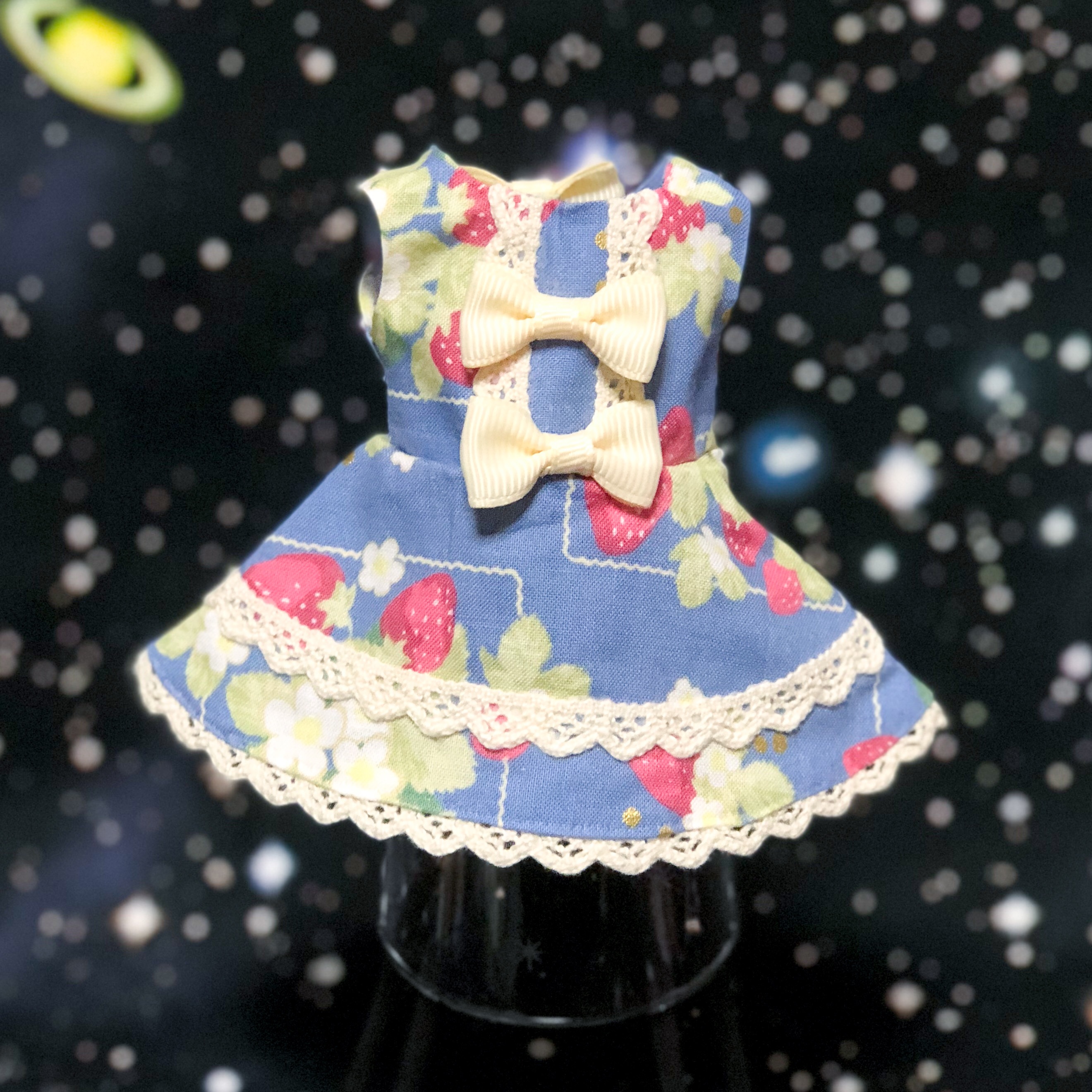 いちご柄に、リボンが2つのロリータ風ワンピースです。